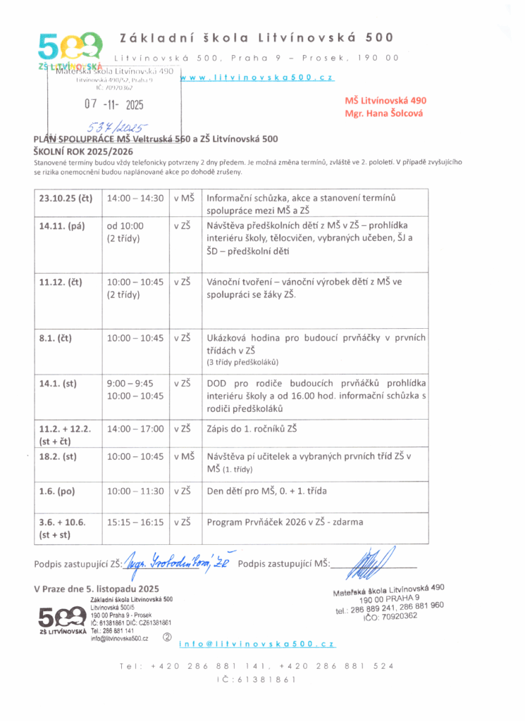 Plán spolupráce se ZŠ Litvínovská